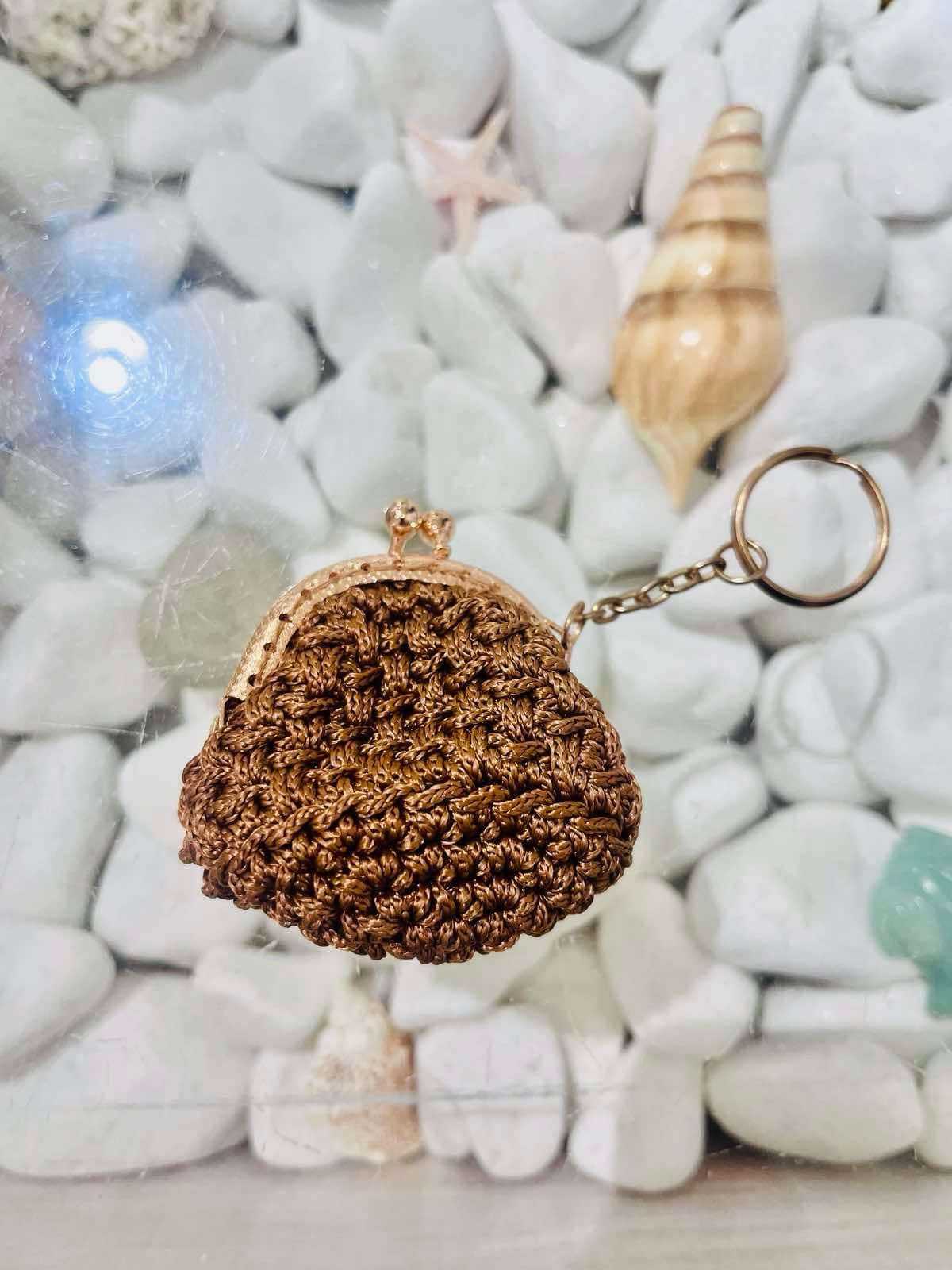 Χειροποίητο Πλεκτό Πορτοφολάκι Μπρελόκ Καφέ