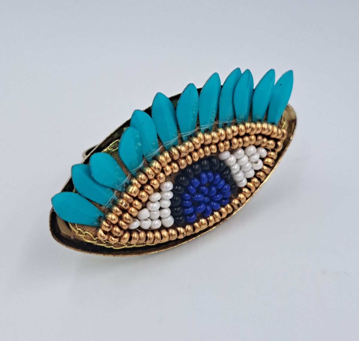 Χειροποίητο δαχτυλίδι μάτι με πέρλες και χάντρες